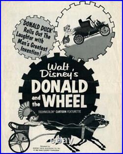 The cels here are not commemorations, reproductions, or copies, but the original hand-painted production cels with provenance tracing them back to use by Disney for the filming of its actual cartoons. The initial scans are of the actual Disney artwork being offered, with the last scan showing a promotional piece concerning the 1961 release of the "Donald and the Wheel" featurette (not included in this lot).