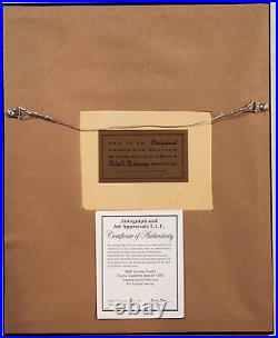 Beautiful hand inked paint lines. BONUS: We have added a custom made background of the castle wall. Brand NEW Solid Wood Custom Frame and Custom Matting. Piece is finished off with brown dust-paper backing. Art Corner label is visible on the backing.